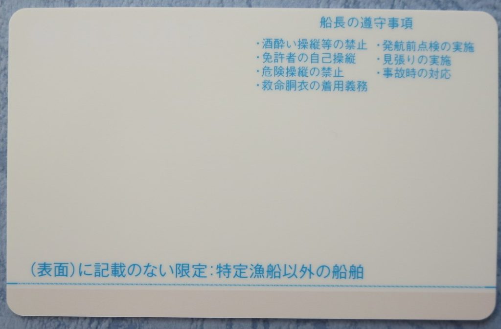 ※特殊小型船舶操縦士免許のみお持ちの方の操縦免許証には裏面の記載はありません。